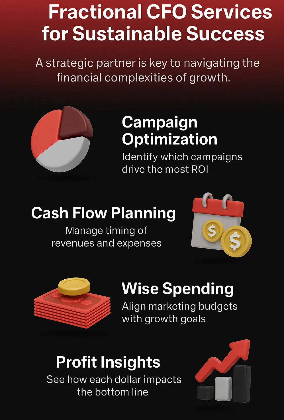 Action: Fractional CFO embedded with the team. Connected campaign metrics to revenue. Restructured budgets. Built profitability reports.